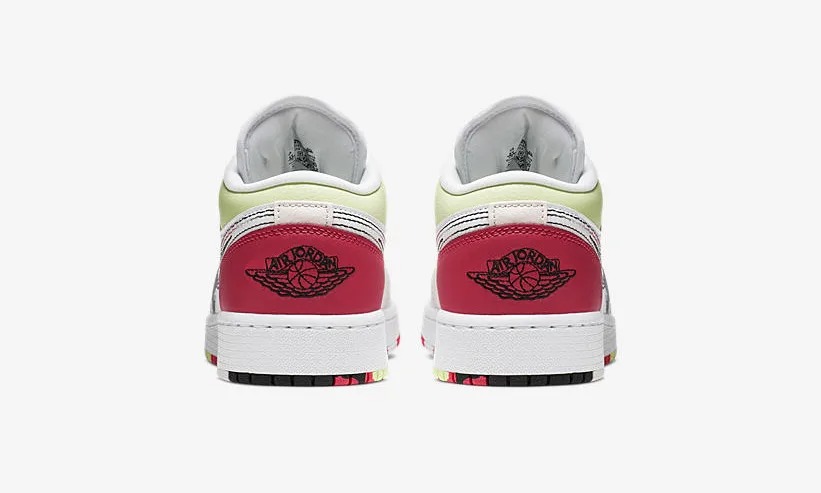 Nike Air Jordan 1 Low GS, белый с розовым и зеленым, кожа, женские Размер 37